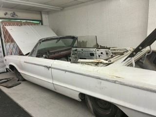 1965 Dodge Polara 880 Convertible Restoration Great start for the restoration, nice body, virtually rust free, only a small amount of surface rust on the floor. Frame is in great shape and it has its original 383 cu in engine, even the trunk floor is original rust free.